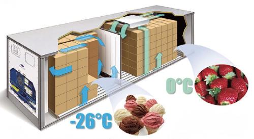 冷冻冷藏双温冷库建造是指在一套冷库中加隔板分为两个不同温度的单间,并分别安装两套库门,根据贮存食品的需要,设计不同温度,能够同时实现保鲜和冷藏的功能,制冷机组用一台集中供冷,两套库内蒸发器同时制冷,温度控制系统能独立显示控制每间不同的温度,因采用一机双控系统控制两间温度,当一间温度达到设定要求控制系统才关闭此间制冷,直到另一间温度也达到设定要求制冷机组才停止工作,开机前哪间温度先达到设定要求自动控制系统就控制制冷机组实现哪间的库内制冷。
