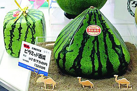 虽然大家都知道这种异形西瓜是模具套出来的,但不可置否,它们是十分吸引眼球的。为什么金字塔西瓜还配上骆驼!那边的骆驼这辈子都没见过西瓜吧?。』褂心窍惭蜓蛭鞴?,已经无力吐槽。话说同样的味道和营养,因为外表,价格上翻20多倍,真的值得吗?