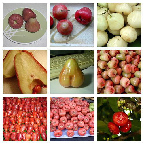 2.莲雾:莲雾原产于马来半岛,目前国内台湾、海南、广东、广西、福建南部也有栽培。颜色缤纷多彩,有深红色、粉红色、深红带黑(黑钻石、黑珍珠)、白色、青绿色等等。